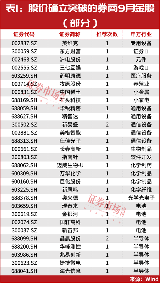 不止芯片、算力、创新药、固态电池等,9月的市场机会或进一步呈现为多元化,从券商提及的9月金股来看,还涉及互联网金融、有色金属一众行业,从券商提及的相关标的来看,它们多属于行业龙头股(见表1)。